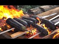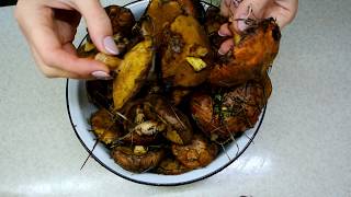 - Разогреть сливочное масло на сковороде и обжарить шпажки с красной рыбой по 2-3 минуты с каждой стороны, до золотистой корочки.